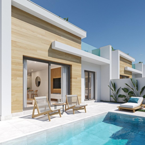 An new exclusive luxury development in Balsicas, Murcia, offering five detached villas with private pools. These one-level villas are designed to maximize natural light, featuring a spacious garden on the ground floor and a large solarium on the first floor, perfect for enjoying sunshine throughout the year.