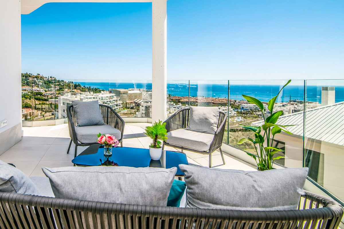 This high-end 3-bedroom, 2-bathroom apartment is positioned within the prestigious Las Lomas 2 community, offering 128 m² of refined interior space and a 26 m² south-facing terrace with panoramic sea views. Delivered in excellent condition, fully furnished, and crafted with a modern, functional layout, it provides a true turnkey living experience in the exclusive Reserva del Higuerón environment.