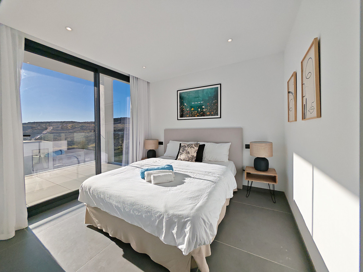 Villa for sale in Valle Romano, Estepona with 4 bedrooms, 3 bathrooms, 1 on suite bathroom, 1 toilet and with orientation west, with private swimming pool, private garage (1 parking spaces) and private garden. Regarding property dimensions, it has 316 m² built and 495 m² plot. Has the following facilities amenities near, transport near, air conditioning, fully furnished, fully fitted kitchen, basement, guest room, alarm, brand new, guest toilet, kitchen equipped, living room, country view, mountain view, golf view, heated pool, automatic irrigation system, smart home system, laundry room, internet - wi-fi, covered terrace, fitted wardrobes, garden view, pool view, underfloor heating (bathrooms), close to sea / beach, close to golf, uncovered terrace, glass doors, open plan kitchen, close to shops, close to town, close to port, close to schools and surveillance cameras.