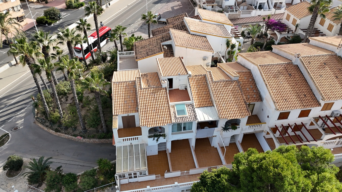 Fantastic opportunity to purchase a bargain property located just 200m from La Mata beach. This duplex apartment forms part of a well established community within easy walking distance to the beach along with numerous restaurants, tapas bars and convenience stores all on your doorstep. The apartment is located just inside the gated community and boasts a private garden along with a private solarium. A staircase leads up to apartment and straight away you have clear sea views out towards the Mediterranean from the living and dining room. There is a American style open plan kitchen along with a double bedroom and the family bathroom. A staircase leads up the second guest bedroom which has private access to the solarium and more sea views. The property is sold as seen with brand new appliances in the kitchen, air-conditioning throughout, a storage room on the ground floor plus underground parking.