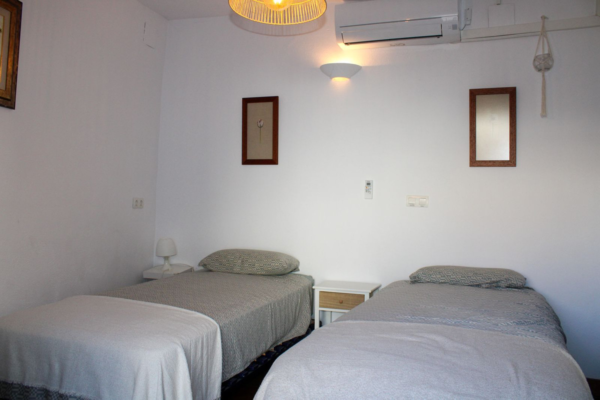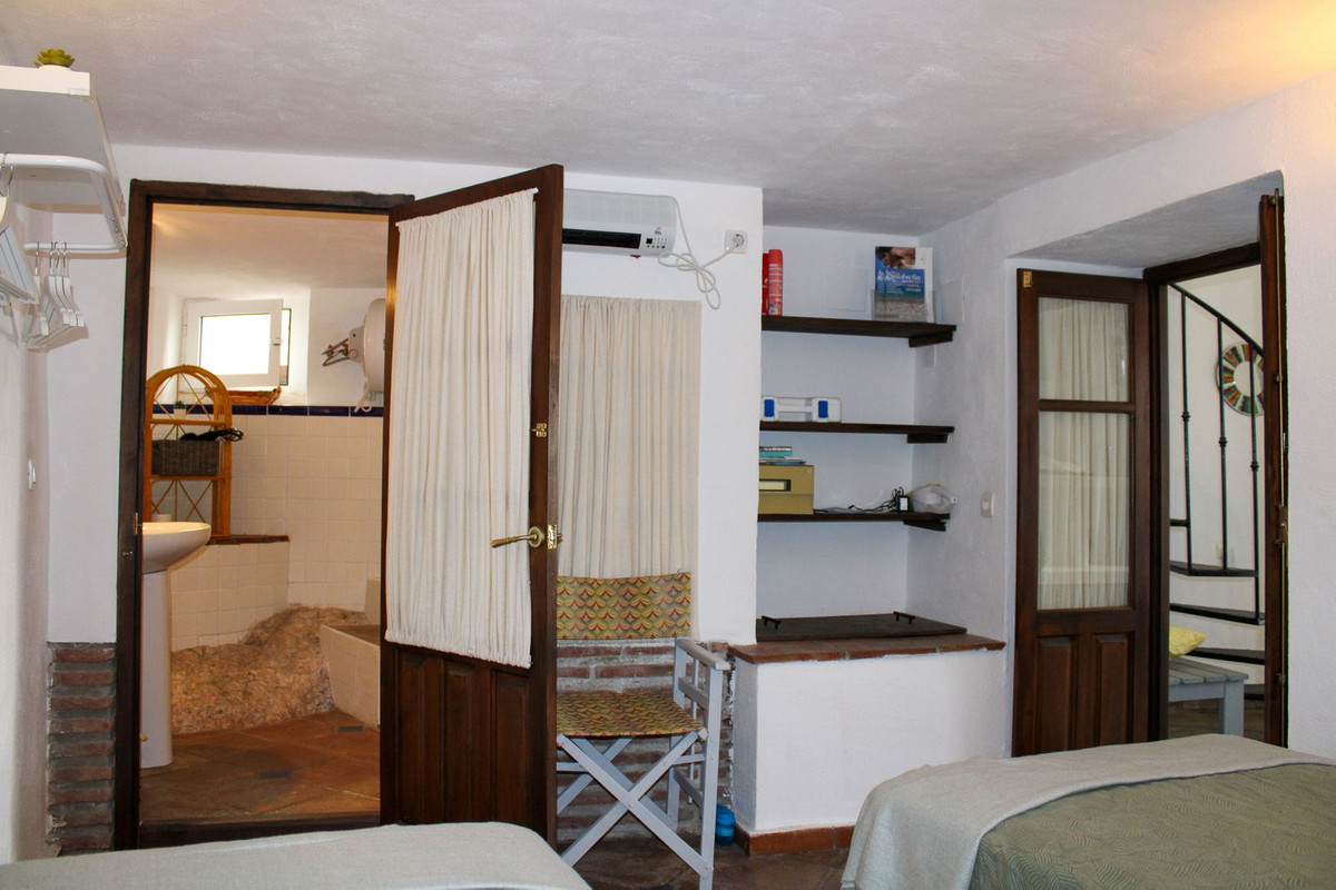 We go up to the next floor and come to a furnishable hall, which currently serves as a living room and has a French balcony with views of the beautiful castle of Salobreña. Here you also have a large bedroom with a French balcony, as well as a bathroom with shower.
