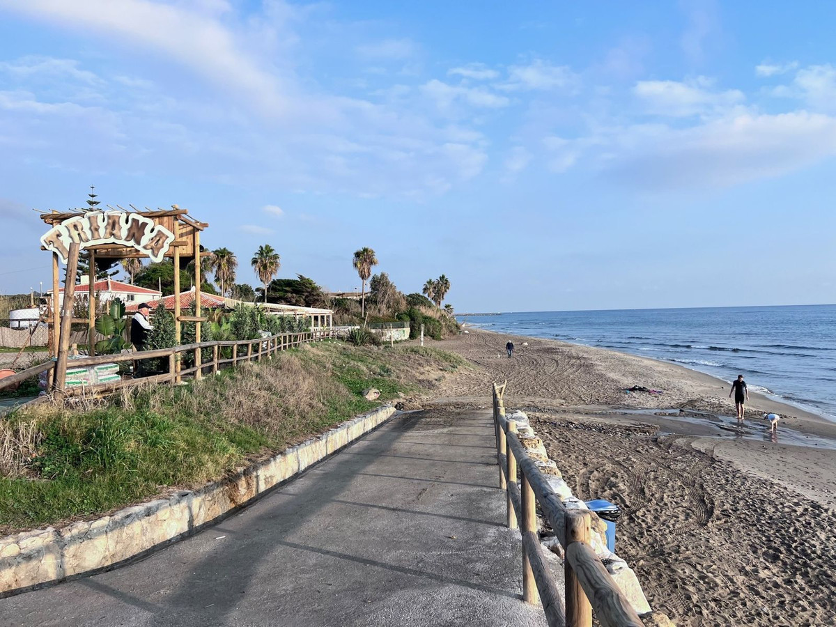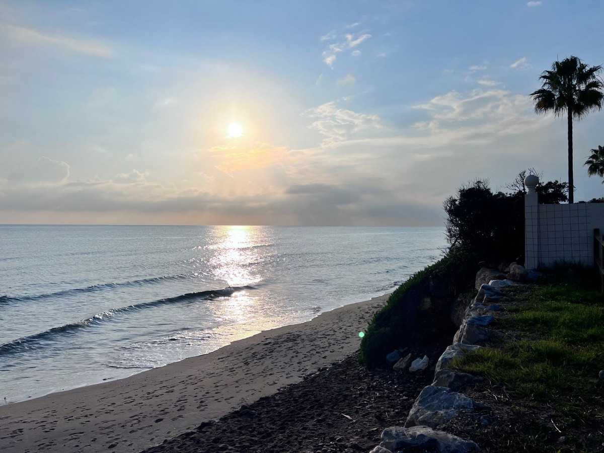 Welcome to this extremely spacious beach-side duplex penthouse, located in the ever popular Carib Playa, "Fairways" close to Cabopino & Elviria. On the main level this stunning apartment offers, 2 double bedrooms, one at each end of the apartment, the master bedroom has its own en-suite bathroom plus there is an additional full shower room servicing the second bedroom, a brand new fully fitted kitchen including new appliances, Oven, dishwasher, microwave etc. Off the kitchen there is a separate utility room housing the washing machine, tumble dryer & storage, then a split level lounge/dining area with its double height ceiling leading to the south facing double terrace with partial awning that spreads across both the lounge & master bedroom, This terrace offers lovely views of the communal gardens & pool area. back inside a wooden stair case leads up to the top floor offering yet another double bedroom with full bath & shower en-suite with a velux sky light, this bedroom also has access to its own private south facing terrace.