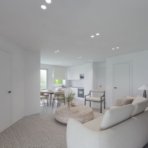 From the living room, you step directly onto the generous 31 m² terrace, which also connects to one of the bedrooms. The terrace offers excellent privacy and plenty of space for both lounging and dining – perfect for lazy days in the sun. From here, you can even catch a glimpse of the sea.