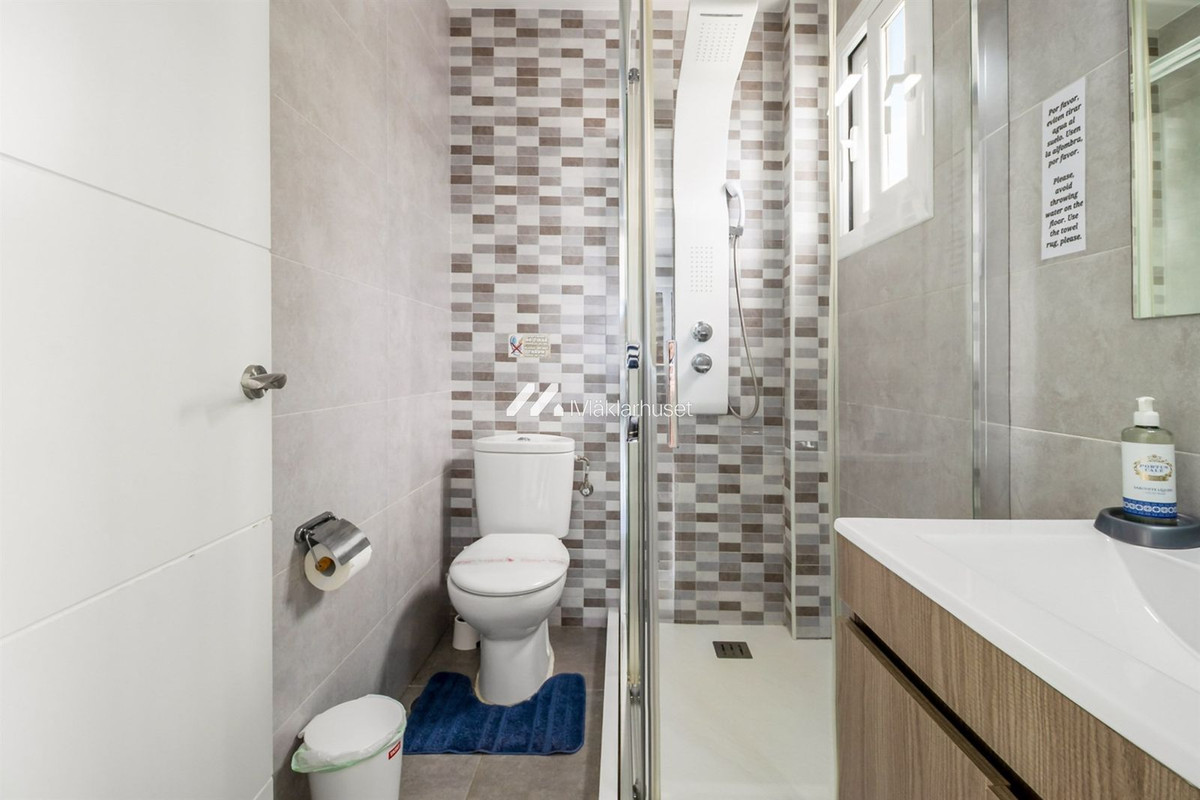 On the upper floor, you'll find three large bedrooms and a stylish bathroom. Two of the bedrooms feature access to private terraces – ideal for morning coffee with a view. At the very top of the home, a spectacular rooftop terrace offers even more space for entertaining and breathtaking panoramic views.