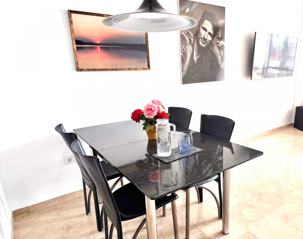 Air conditioning is installed in three rooms, ensuring year-round comfort. The fully equipped kitchen enjoys spectacular panoramic views of the sea and La Concha mountain, creating a truly unique cooking and dining experience. The property also benefits from solar panels dedicated to domestic hot water consumption, increasing efficiency and sustainability.