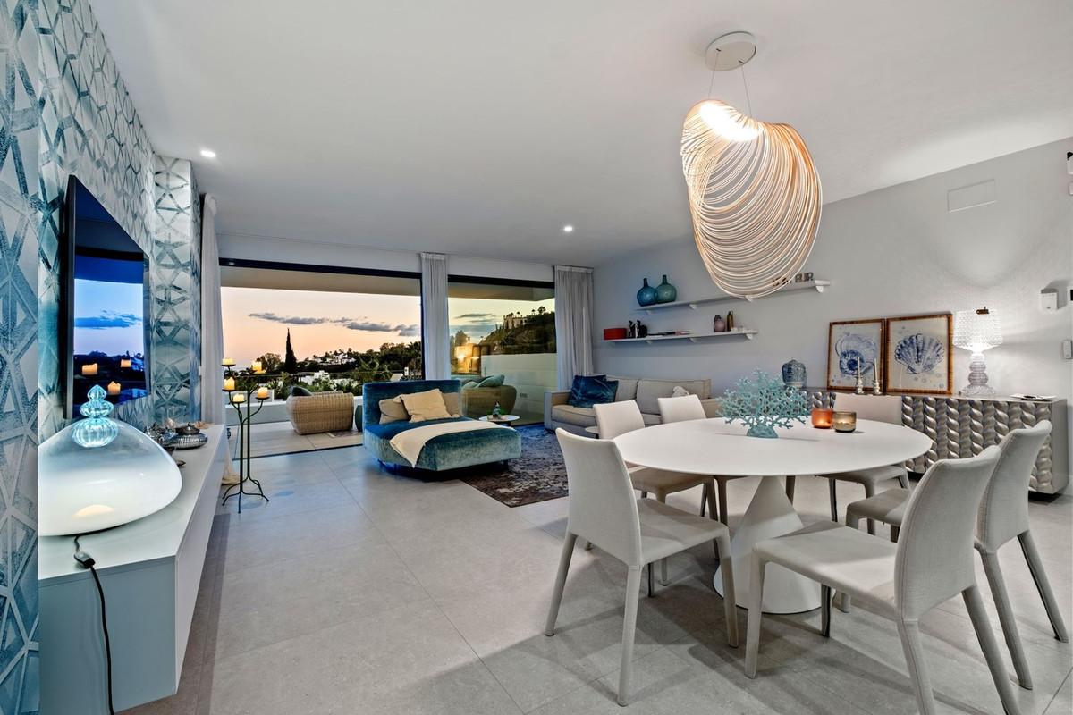 This well presented two-bedroom, two-bathroom apartment is located in the sought-after Aqualina development, in the heart of Marbella's Golf Valley. The property offers 112 m² of interior living space and a generous 43 m² private terrace with open sea views, making it ideal for both everyday living and holidays.