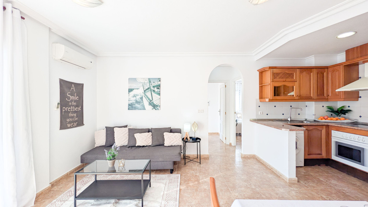The apartment comes with a private parking space in the garage, which provides extra security and convenience. Playa Marina 1 is a well-kept and professionally managed area with two separate entrances – one leading directly to the lively restaurant strip and one providing quiet access via the garden and pool area.