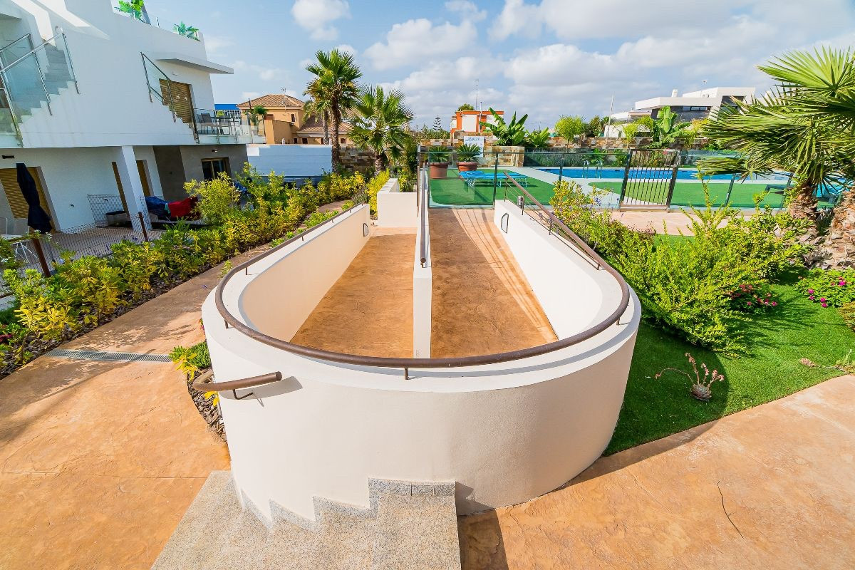 Beautiful Ground Floor Apartment in Sunplace – Pilar de la Horadada This modern ground-floor apartment in the popular Sunplace neighborhood offers the perfect balance of comfort, style, and Mediterranean quality of life. With two spacious bedrooms and two luxuriously finished bathrooms, this is the ideal home for both permanent residence and holiday use. The apartment features a bright, open-plan living room with direct access to a spacious private terrace and garden , where you can enjoy the Spanish sun year-round. The modern kitchen is fully equipped and designed with both functionality and elegance in mind. Both bedrooms are spacious; the master bedroom has an en-suite bathroom , offering additional privacy and comfort. The second bathroom is also fully equipped and features high-quality materials. Situated in a quiet, well-maintained residence with communal swimming pool and green areas, the apartment is within easy reach of amenities such as supermarkets, restaurants, sports facilities and the beautiful beaches of Torre de la Horadada and Higuericas .