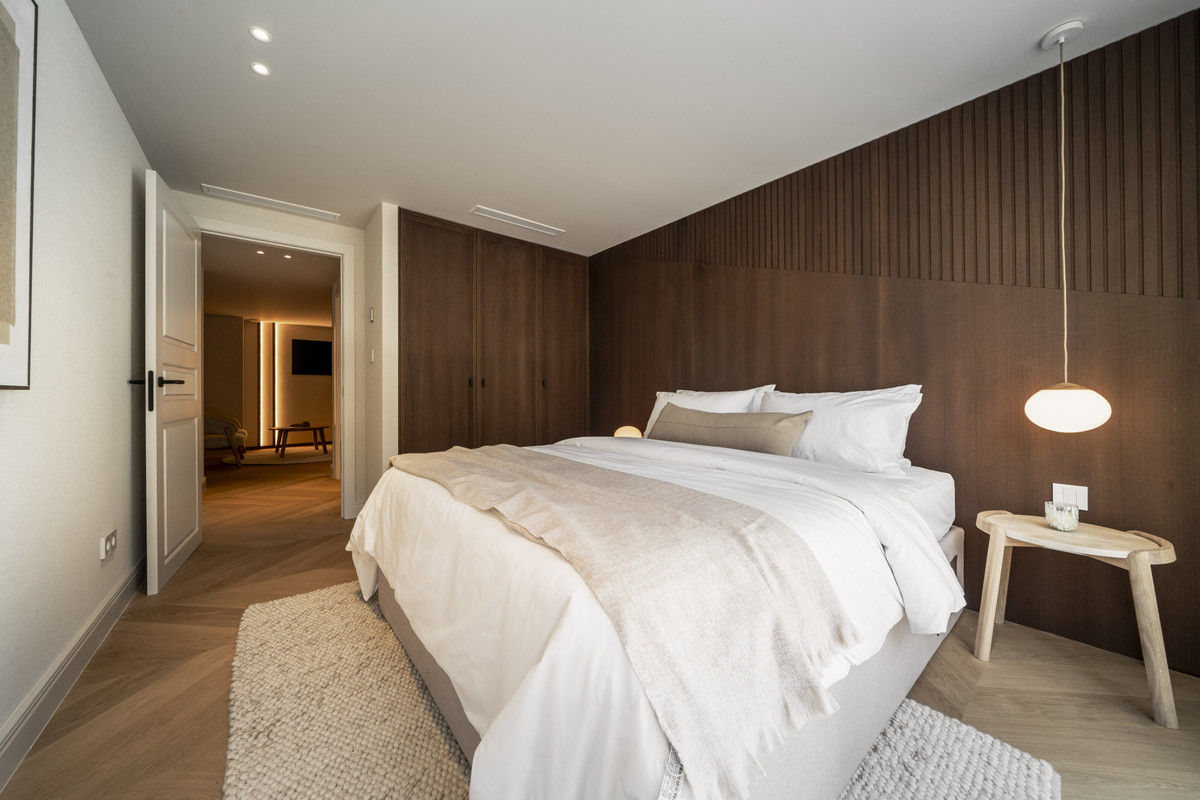 Inside, the home is defined by an elegant selection of materials, including Chevron wooden flooring that brings warmth and sophistication to every space. The Danespan kitchen combines clean design with functionality, creating a welcoming focal point for daily living and entertaining. The villa offers five spacious bedrooms, thoughtfully distributed to ensure comfort for family and guests. The wellness area features an indoor pool, sauna, and steam room, creating a private spa experience within the home.