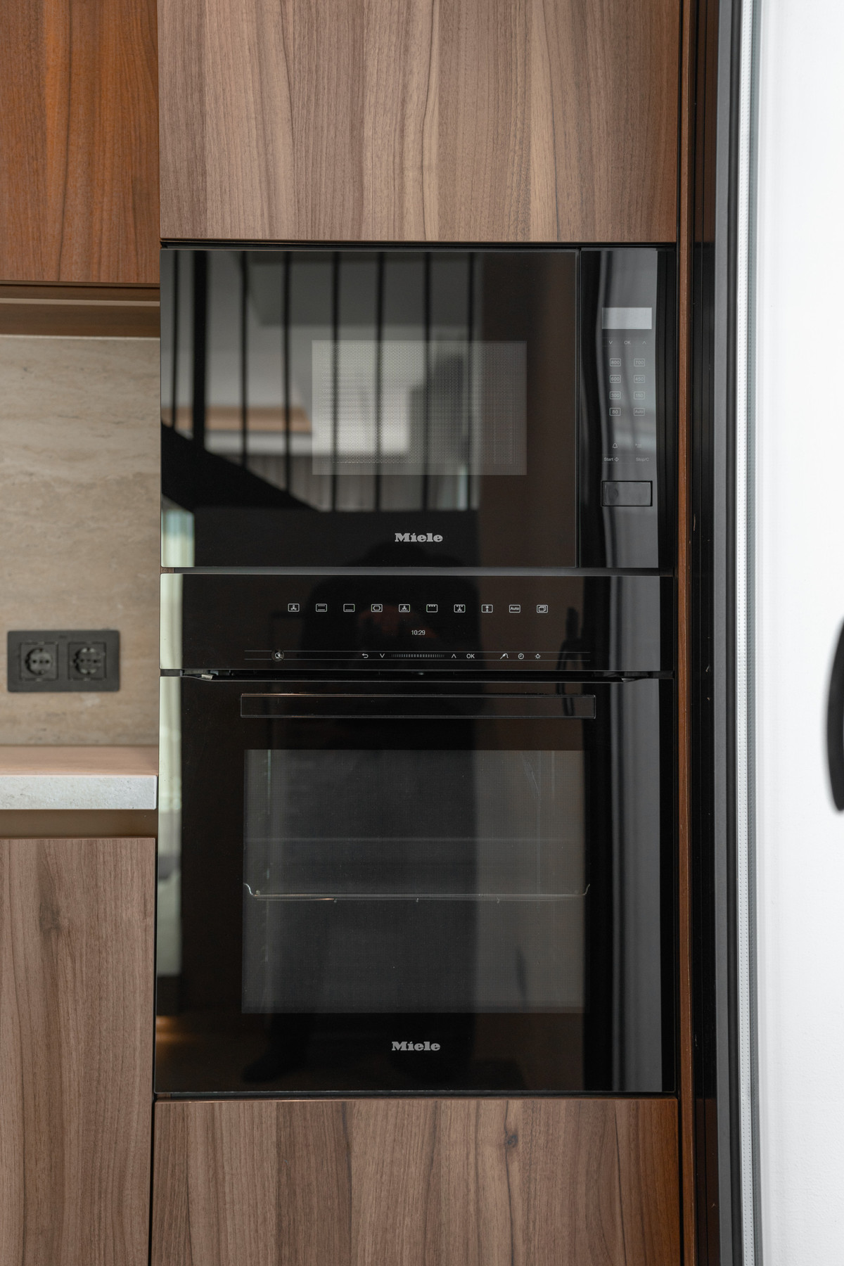 Entering inside, you'll find three bedrooms, each with its own full bathroom, along with a large dining table and a spacious living area with custom furniture-made by Aldecora.