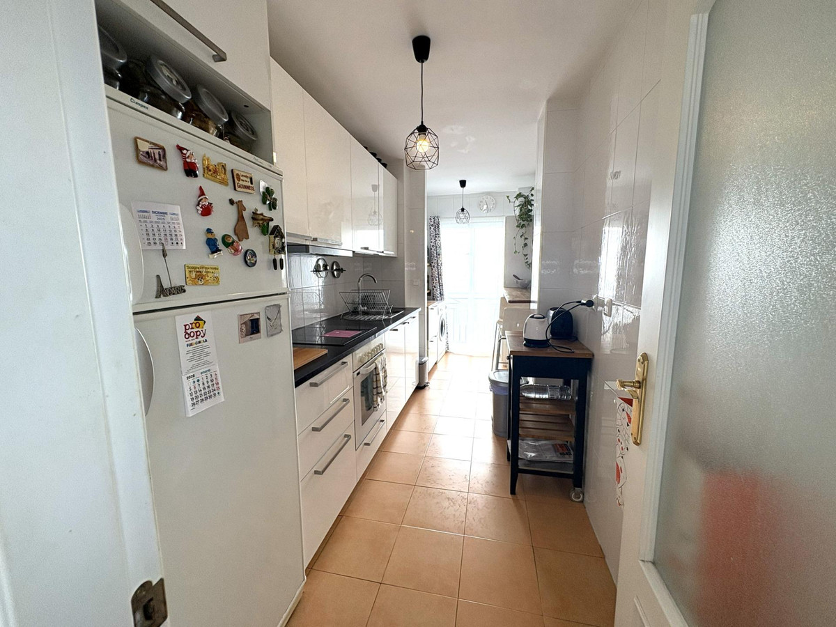 It offers a large, recently renovated kitchen, modern and fully functional, perfect for everyday use. The sleeping area comprises two bedrooms: a guest bedroom with a fitted wardrobe and a generous master bedroom with en-suite bathroom, also with a fitted wardrobe and direct access to the terrace, providing extra comfort and privacy.