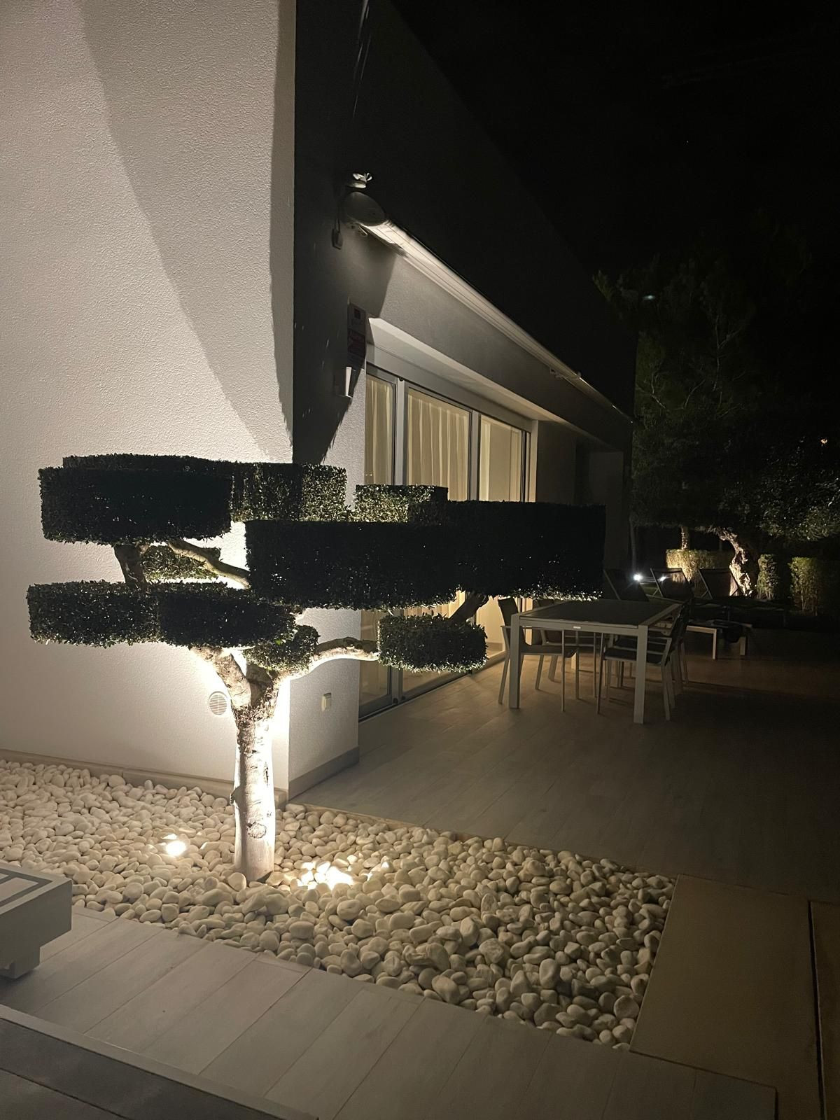 With 3 spacious bedrooms, 2 modern bathrooms, a fully equipped kitchen, and a terrace with a garden and private swimming pool, this villa embodies contemporary architecture with high-quality finishes. Large windows allow an abundance of natural light to flow in, offering breathtaking views of the Mediterranean Sea and enabling an optimal connection between the interior and the exterior.