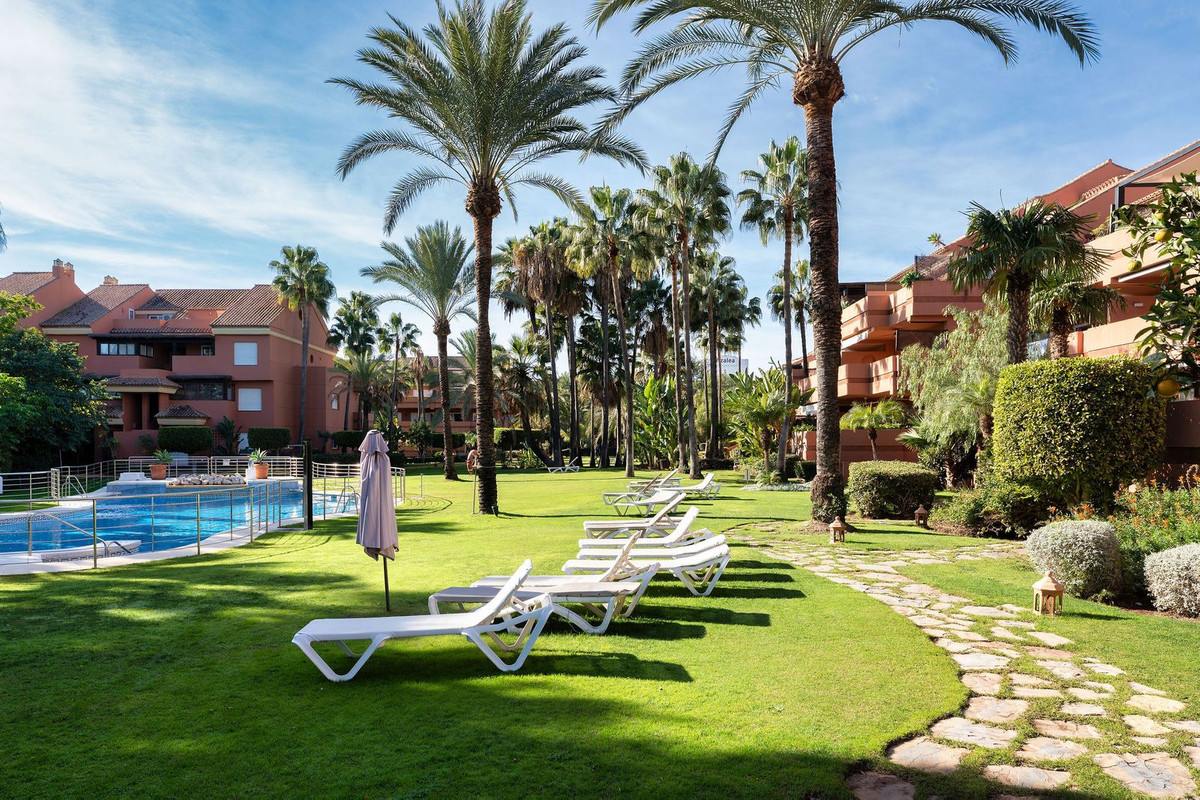 Just a short walk from the beach, this spacious two-bedroom apartment offers direct access to the beautifully maintained garden and swimming pool via a wide private terrace.
