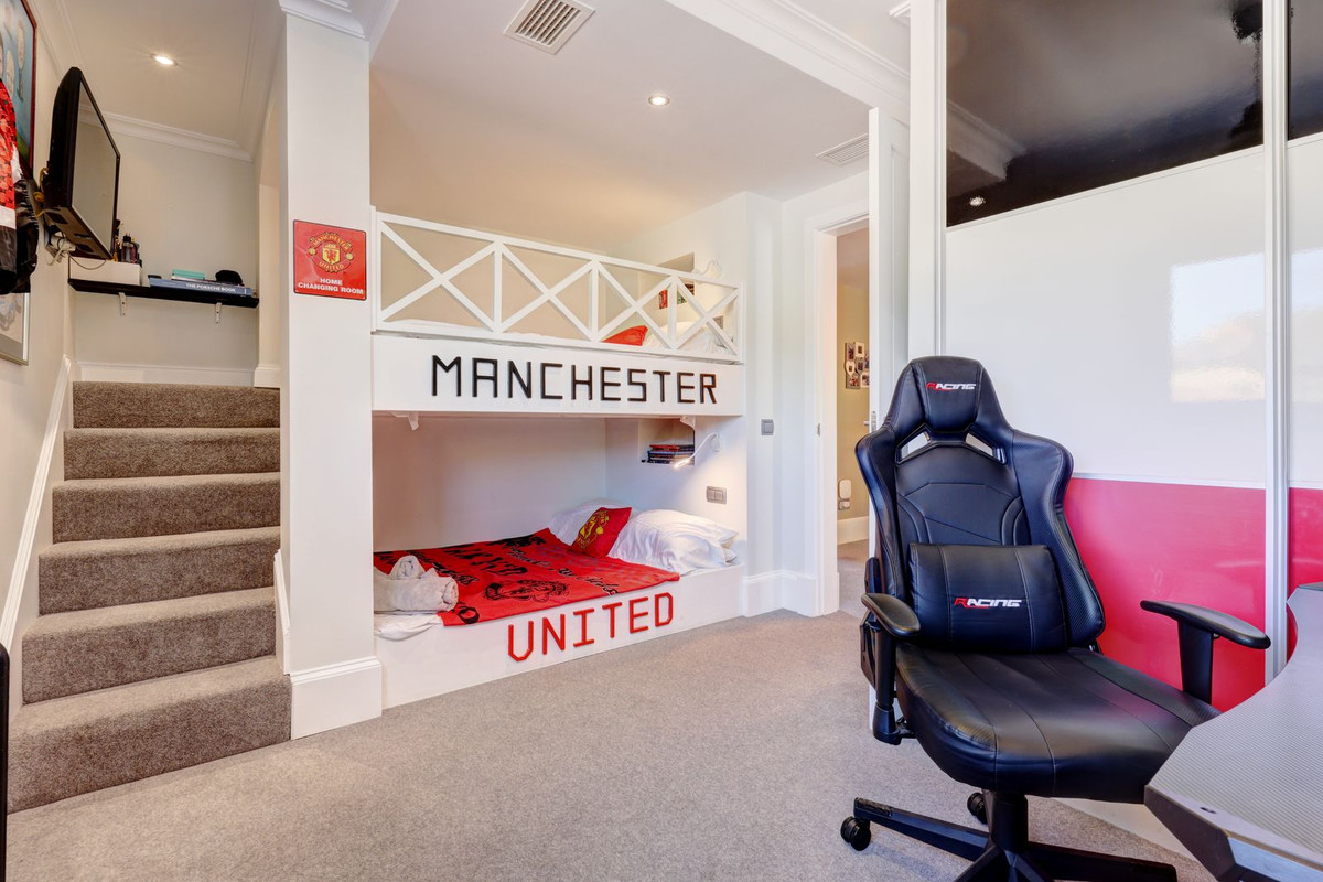 This exceptional space includes a fully equipped gym, sauna, jacuzzi hot tub, walk-in rain shower, and WC, offering a private retreat designed for relaxation and wellbeing.