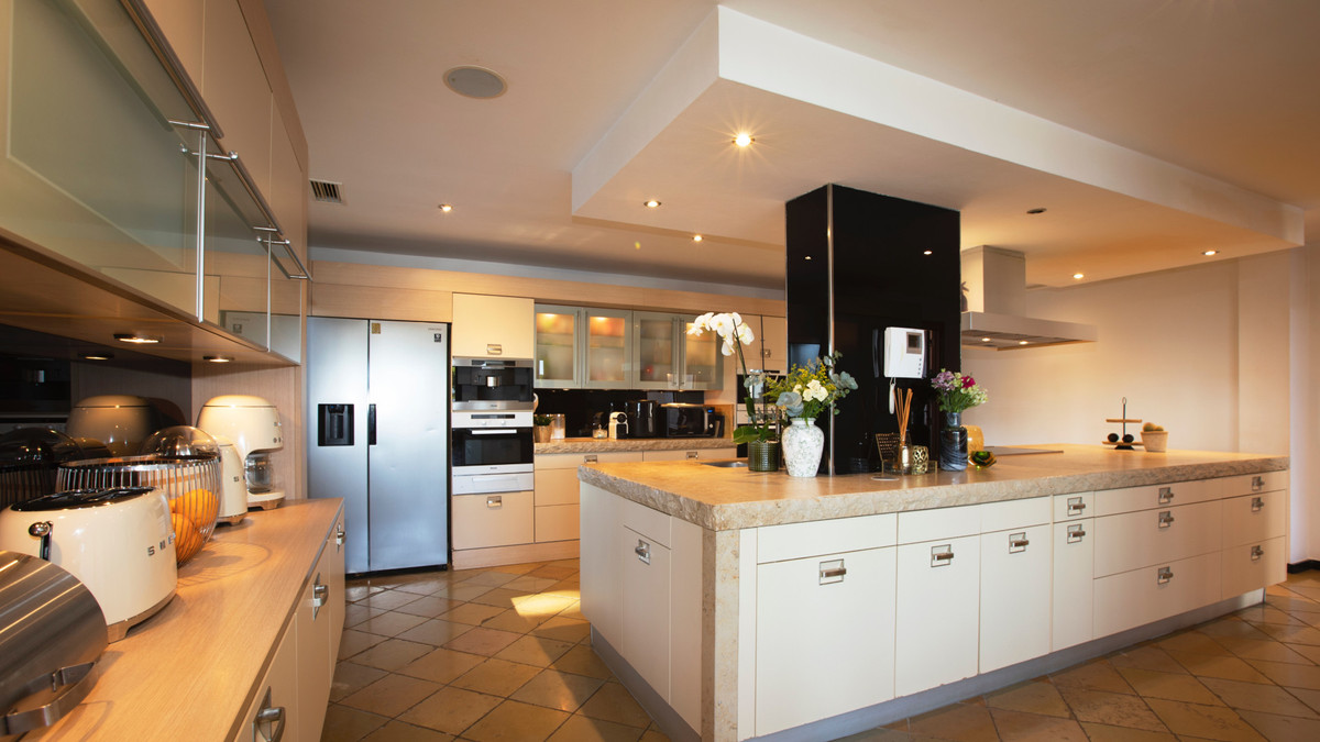 Inside, the villa offers 815 m² of refined living space, featuring eight spacious bedrooms with en-suite bathrooms and a large, fully equipped kitchen ideal for hosting family and guests. Every space has been designed to provide comfort, flow, and understated sophistication.