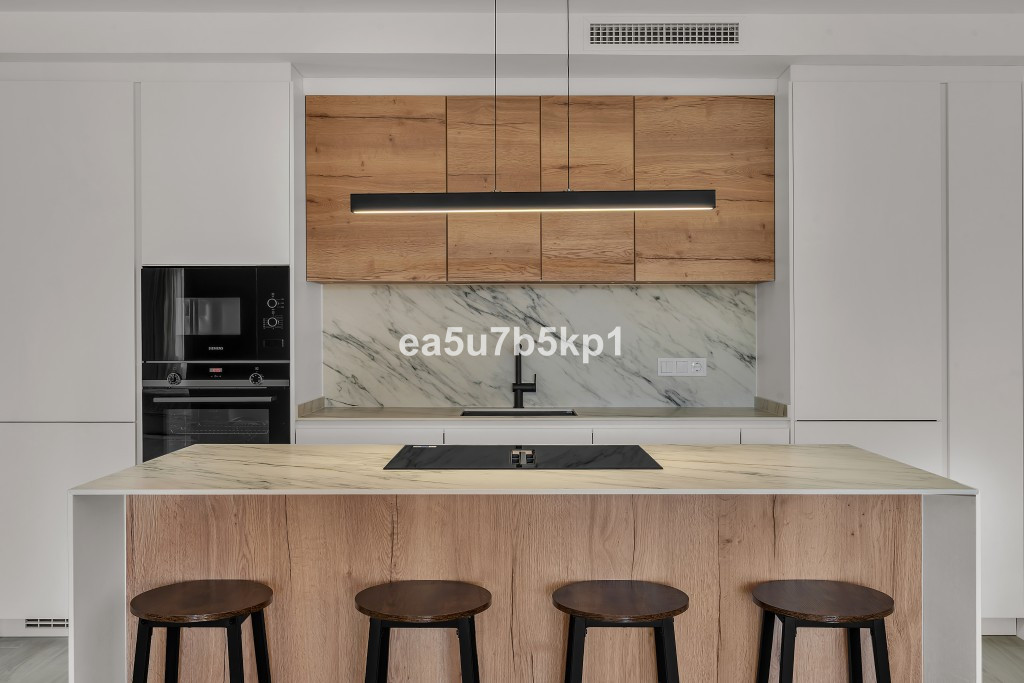 The premium kitchen is a standout feature, designed with a central island and fully equipped with Siemens appliances, including a wine fridge. The apartment is sold fully furnished, making it ready for immediate occupancy.