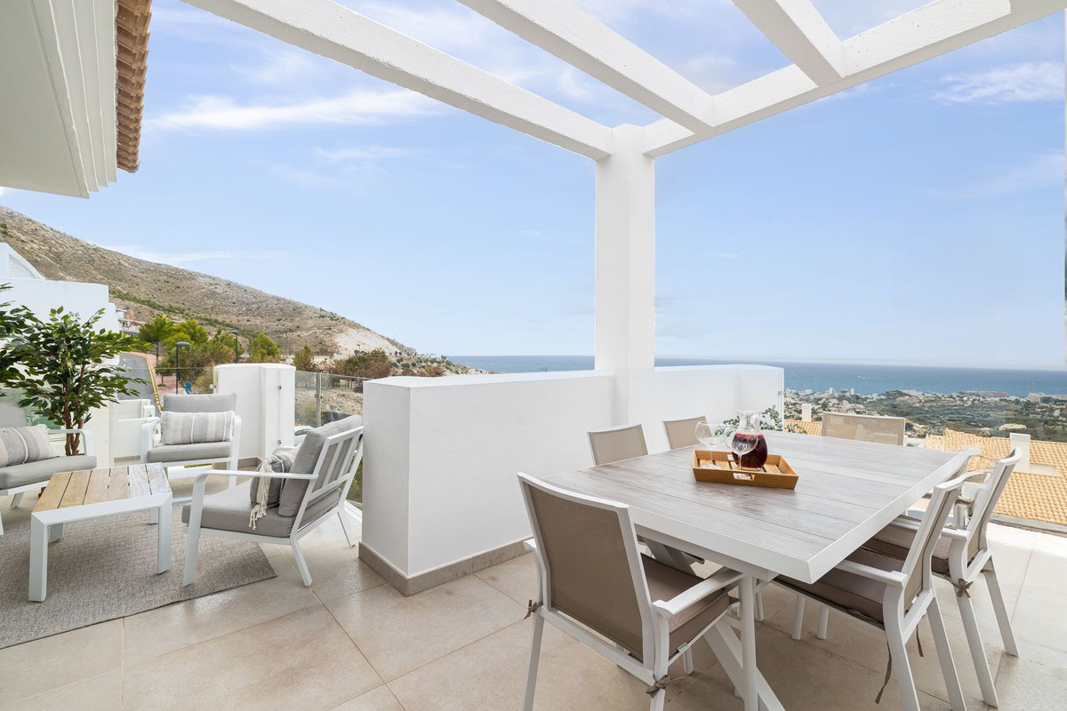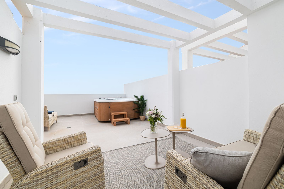 This penthouse is situated in the prestigious and tranquil Las Rocas Blancas area of Benalmádena, conveniently located near all essential services. Benalmádena Pueblo is within walking distance, offering excellent restaurants, local butchers and fishmongers, a bakery, a post office, and the authentic charm of a vibrant Andalusian village. Benalmádena Golf is adjacent to the property, while supermarkets are just a few minutes' drive away. Málaga Airport is reachable in just over 10 minutes, and the town of Arroyo de la Miel is only a few kilometers away.