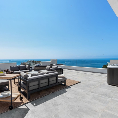 This home offers breathtaking panoramic views stretching across Benalmádena to the Mediterranean Sea. This luxurious property features a spectacular private rooftop terrace and a relaxing jacuzzi—the perfect setting to immerse yourself in the Mediterranean sun and lifestyle.