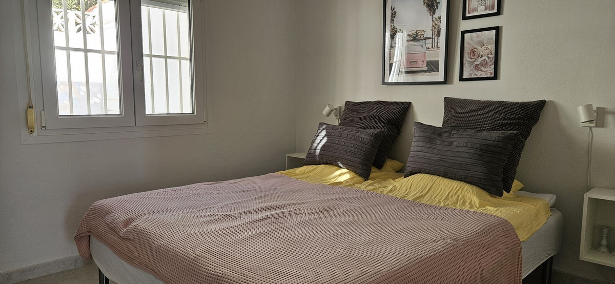 This detached villa offers two good-sized bedrooms and a third, smaller bedroom, along with two bathrooms in the main house. In addition, there is a practical bathroom located in a separate outhouse, currently used by the owners when spending time by the pool.