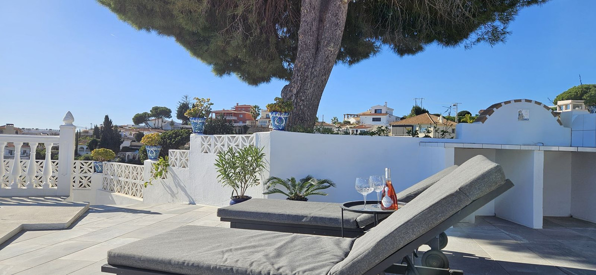 The property was renovated in 2022 and is presented in a well-kept and comfortable condition, with updates that respect the home's original character. The large terrace is a central feature of the villa, with the swimming pool positioned at its heart, and offers beautiful views over the Mediterranean Sea as well as the surrounding area of Torreblanca.