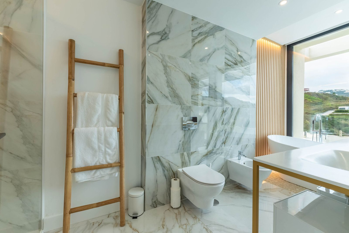 As you move upstairs, high ceilings and a striking glass balustrade continue the luxury feel. Here you'll find an impressive master suite, complete with built-in wardrobes, a beautifully finished ensuite bathroom, and stunning views across the mountains of La Cala Golf.