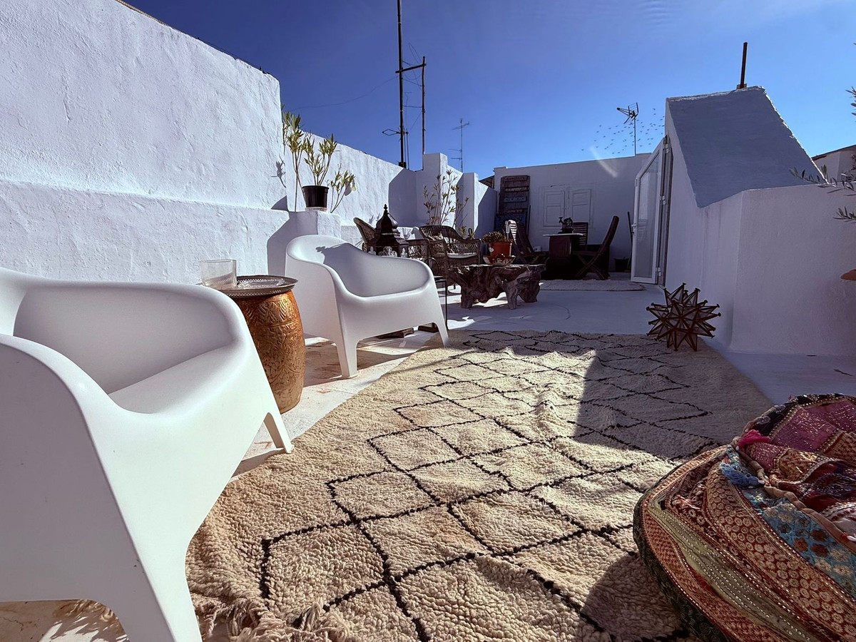 Arranged over three light-filled floors, the home features a spacious open-plan lounge and dining area, flowing seamlessly into a striking fully equipped open-plan kitchen with a range-style oven and central island. A dramatic bespoke light feature runs through the centre of the house, flooding the interiors with natural light and enhancing the airy, elegant, riad-like feel. Beyond the kitchen is an additional lounge area, ideal for entertaining or quiet relaxation. Two separate staircases add both character and flexibility to the layout.