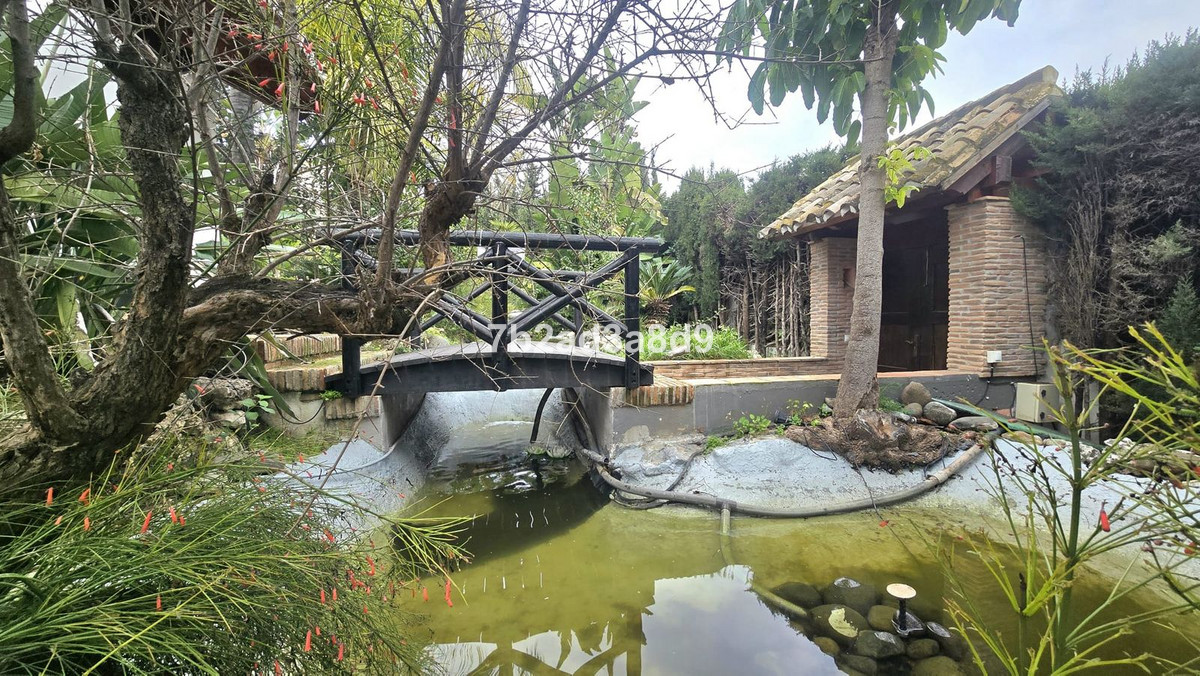 Access to the villa is both striking and serene, via a charming wooden bridge that spans three ornamental fish ponds with water features and fountains, creating a calming sense of arrival.