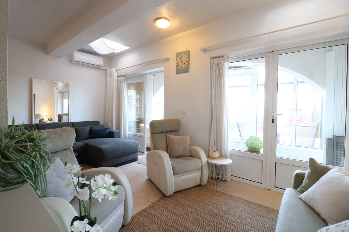 This Exceptional, Two Bedroom, Townhouse in Quesada, is located in a highly convenient and popular area, with a supermarket, eating places, and café bars all within a 7 minute walk. Quesada high street is close by, the renowned La Marquesa golf course is just a 5 minute drive, and the beautiful coastal beaches can be reached in approximately 15 minutes. The charming village of Benijofar is right on the doorstep, making this an ideal Costa Blanca South location. The living area of this property has been renovated to a lovely standard, creating a bright and welcoming home. An inviting glazed-in terrace leads into the open plan living space, filled with natural light and featuring air conditioning. The layout incorporates comfortable lounge, sitting, and dining areas, all flowing seamlessly into the fitted kitchen with an island — perfect for modern living and entertaining. On this level, there is a double bedroom with air conditioning and doors leading into a separate room currently used as a utility area. The single bedroom benefits from a pull-down ladder providing access to an upper space, presently used for storage; however, there is excellent potential to create a staircase and reform this area into a full third bedroom if desired. A modern family shower room completes the interior accommodation. Externally, the front tiled garden offers access up to the private solarium, where the house enjoys vast, open views across the countryside towards the mountains — an ideal setting to relax or entertain. Off-road parking adds to the practicality of this wonderful home. This is a unique and versatile property, ideal as a permanent residence or holiday home, offering space, views, and a superb location in the heart of the Costa Blanca South.\n