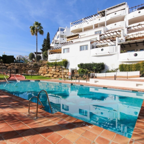 The kitchen is fully equipped with all the electrodomestics and with a window. There are 3 rooms all with windows and 1 full bathroom with a bathtub. The views from the terrace are nice and green and overlooking the pool. It is a gated community in a cul de sac street in lower Riviera del Sol area. There is a restaurant in the same street (walking distance 100 meters) and the famous R11 gym and tennis club is at 2,3 minutes walking distance. The beach and the supermarkets, pharmacy and many bars and restaurants are at 7 minutes walking distance.