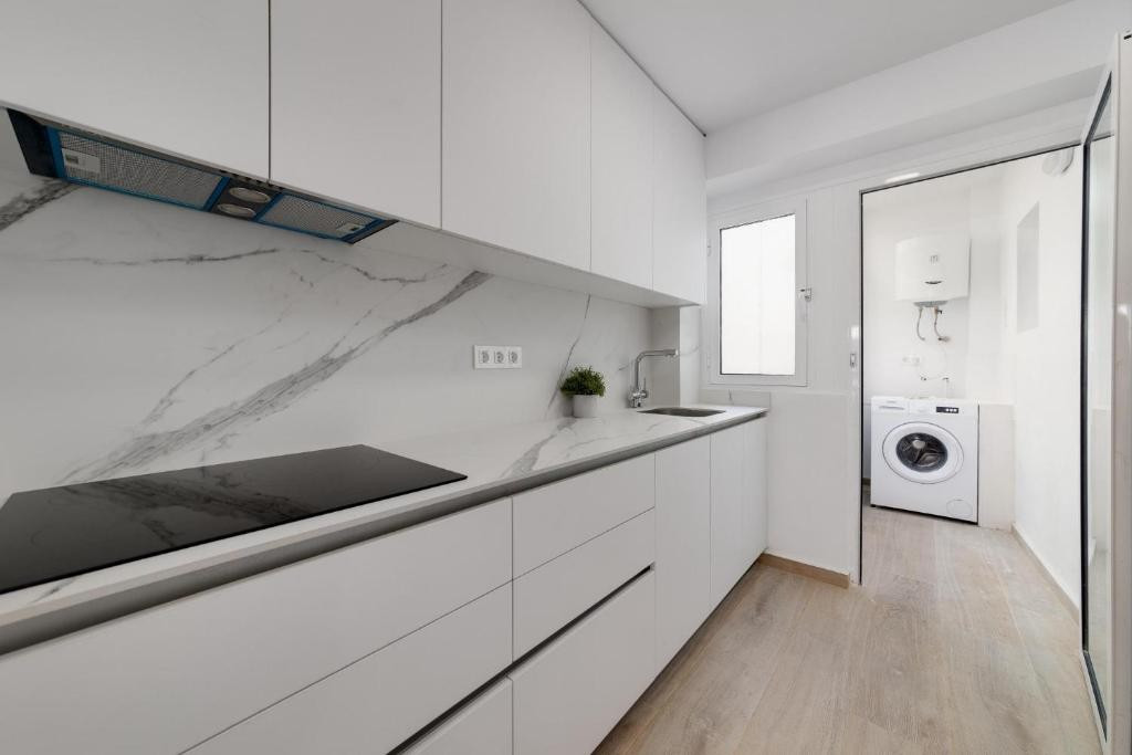 The living room and kitchen form a bright, open space. All furniture and appliances have been in use since June 2024 and are in like-new condition.