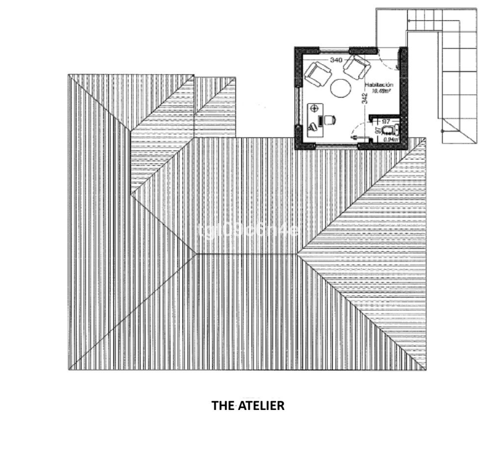 - THE ATELIER: A side staircase attached to the facade leads to the door of this accomodation, which also offers absolute privacy thanks to its separate entrance. It has been used as an art studio, but with minimal renovation, a bathroom with shower could be added to convert it into an additional guest suite. Being the top floor of the house, it offers beautiful panoramic views.