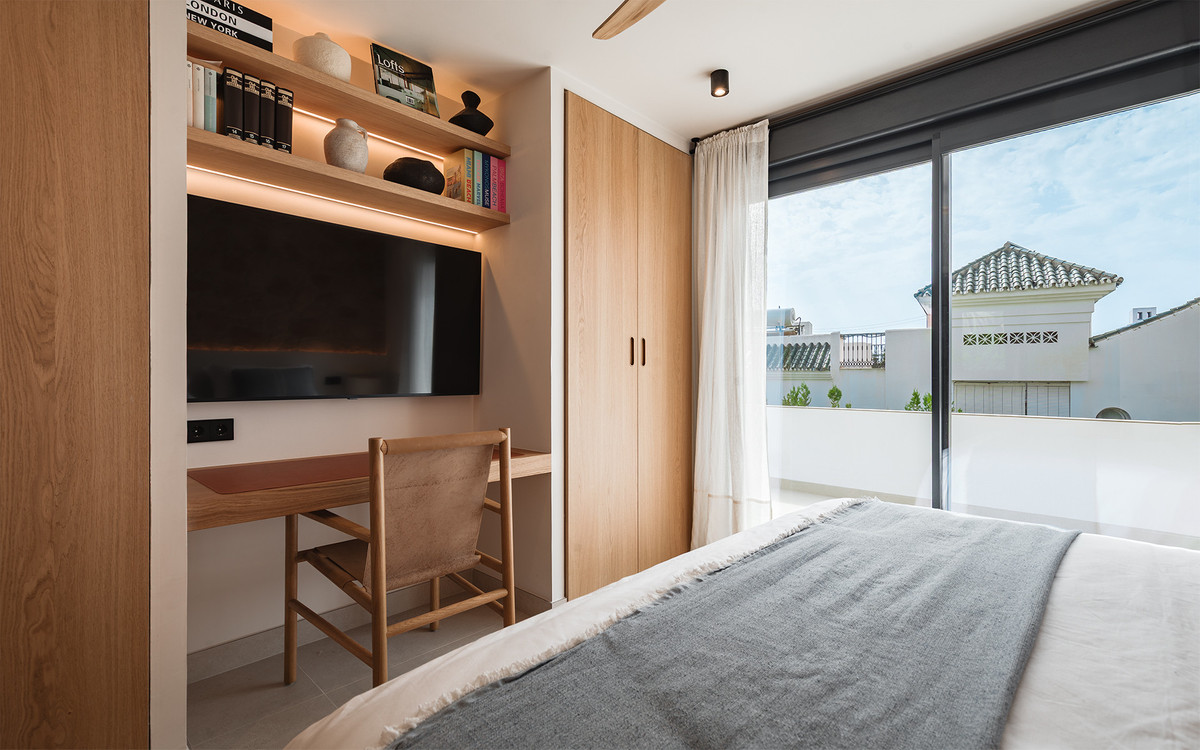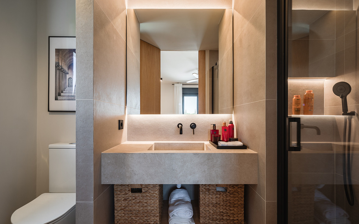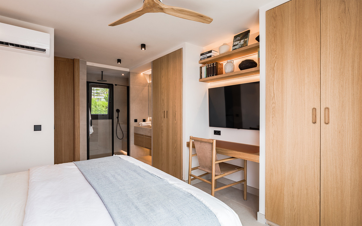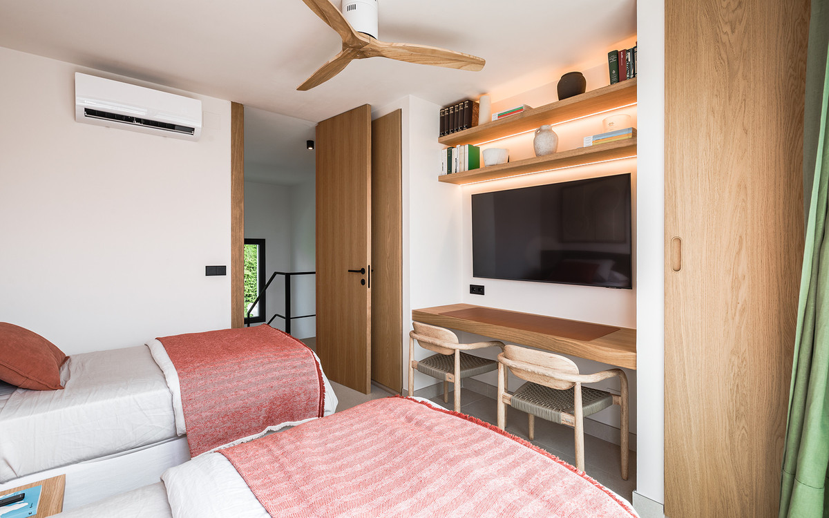 Exclusive villa with modern design and subtle Andalusian touches, set on a spacious and private flat plot in Huerta del Prado, just 5 minutes by car from the beach, La Cañada shopping centre, and Marbella's Golden Mile.