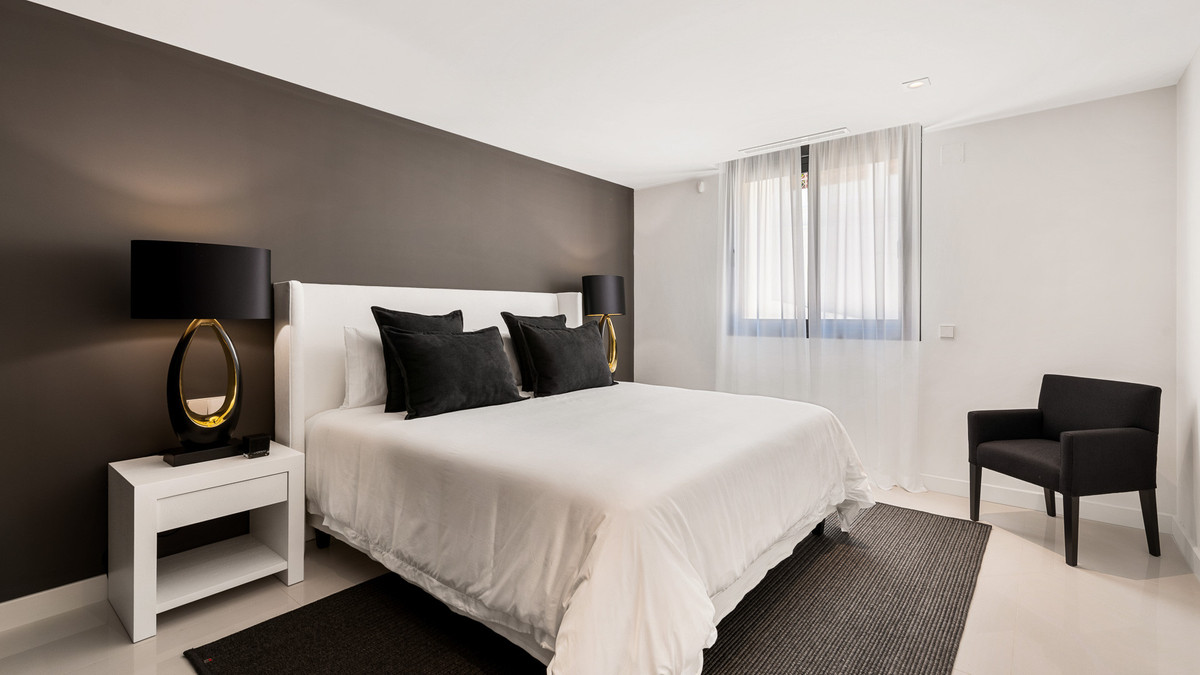 Spectacular villa designed by a well-known award-winning architect located in a privileged setting in the heart of the Golf Valley of Nueva Andalucía, one of the most sought-after residential areas on the Costa del Sol. This southwest-facing villa is distributed over three floors and comprises, on the entrance level: bright hall leading to a huge open-plan living area divided into three seating areas, Italian designer kitchen fully equipped with Gaggenau appliances and dining area. All leads to a spacious porch, the beautiful landscaped gardens with a stunning chill out zone with water features, the extra sized heated pool with outside shower and plenty of space to sunbath and the outside BBQ kitchen - all with stunning views over the the golf course. Upstairs: master bedroom with a huge elegant wardrobe, en-suite bathroom and access to the terrace to enjoy the views, even from the bathtub; further suite; 2 bedrooms sharing a bathroom. All bedrooms have spacious built-in oak wardrobes. Lower level: 2 more bedrooms; laundry room; wine cellar; gym and a home-cinema. Built to the highest specifications and finishes, including bathrooms with Dornbracht fittings to mention a few. Quietly located, undisturbed, on an elevated plot on the golf course. Situated only a few minutes' drive to the renowned Aloha international college and Aloha, with its rich selection of restaurants, bars and amenities. Only 5 minutes' drive to Aloha Golf, Las Brisas Golf, La Quinta Golf, Magna Marbella Golf, and a wide selection of tennis and paddle tennis courts. Only 10 minutes' drive to Puerto Banús, the beach and Marbella's Golden Mile.