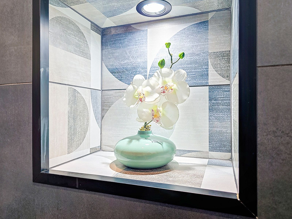 bathroom with walk in rain shower unit. The master bedroom is a beautifully furnished self