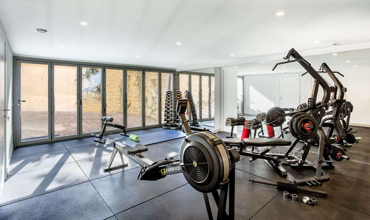 (4) Walking downstairs we have a totally renovated basement space that has been transformed into a fully equipped gymnasium with rest room, kids playroom / customisable space, home-cinema, storage areas and a laundry room.