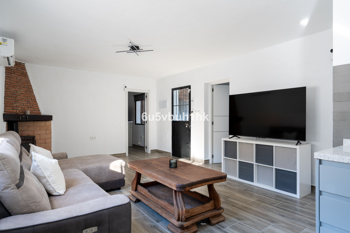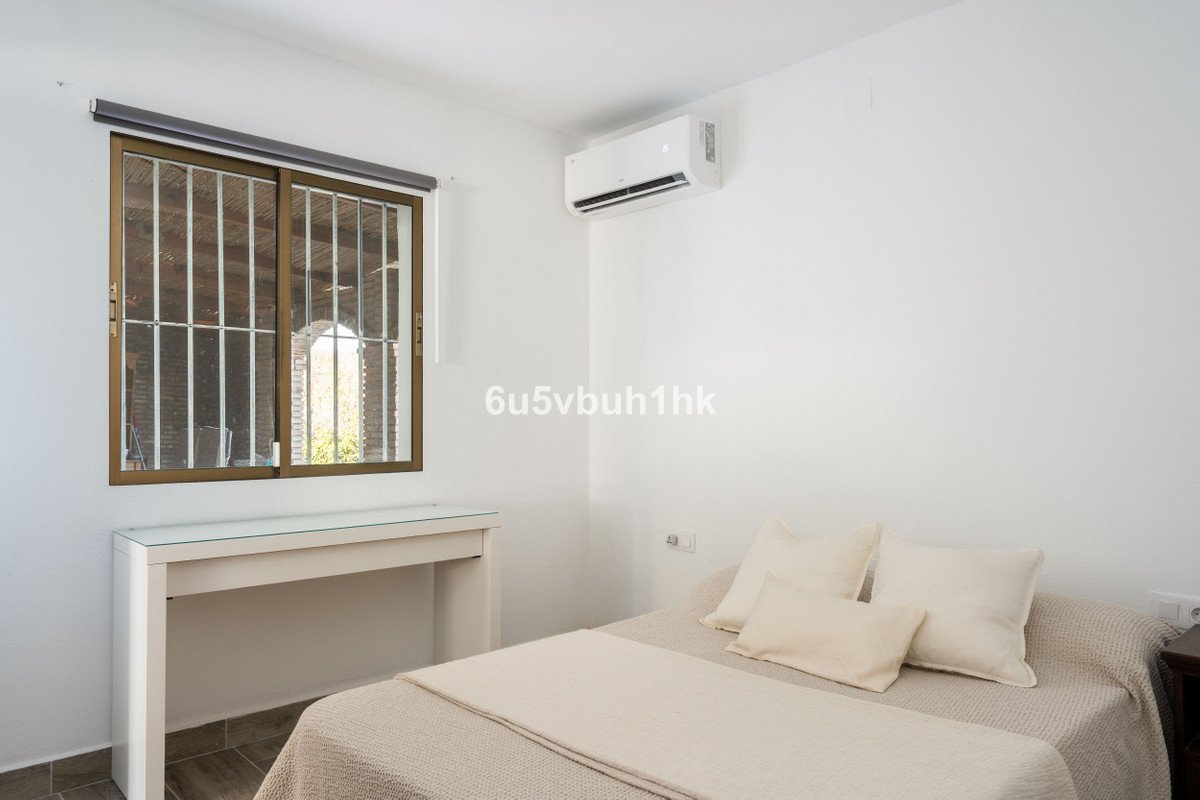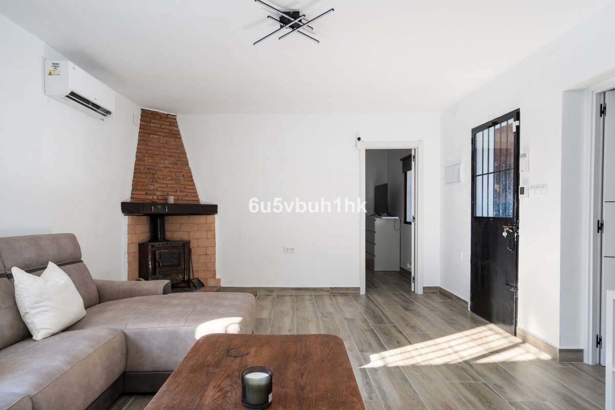 Nestled in the Cártama countryside but conveniently close to town, this single floor finca offers the best of both worlds, tranquil rural living with easy access to modern amenities. This two bedroom home has recently been renovated with new flooring throughout, new air conditioning/heating units, new interior doors, a new open plan kitchen and the electrics have been upgraded. At the entrance to the house is a covered terrace which is partly enclosed and leads onto the pool area with a sunny patio which overlooks a large garden filled with tropical plants and fruit trees. The plot has two access gates, there is ample outside parking by the house or a large two car garage, which could easily be made into a small apartment or a third bedroom with an ensuite bathroom if extra living space is needed.
