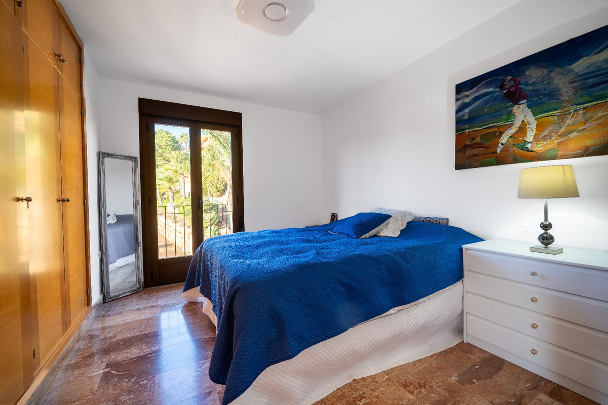 Upstairs the master suite offers fitted wardrobes an ensuite bathroom and a private sunny terrace. A second double bedroom with fitted wardrobes sits alongside. Casa Siroco is an ideal luxury home for buyers seeking space privacy and panoramic views in a prime coastal setting.