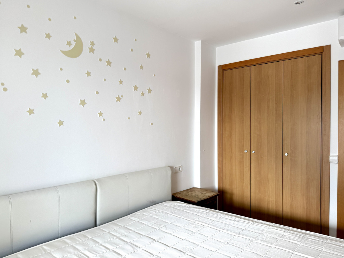 For sale: Bright apartment located in the peaceful, gated urbanization of Vistalmar Duquesa Norte. The property offers a comfortable one-bedroom layout with a private en-suite bathroom, a spacious living room, a fully equipped kitchen, and a covered terrace with partial sea and mountain views.