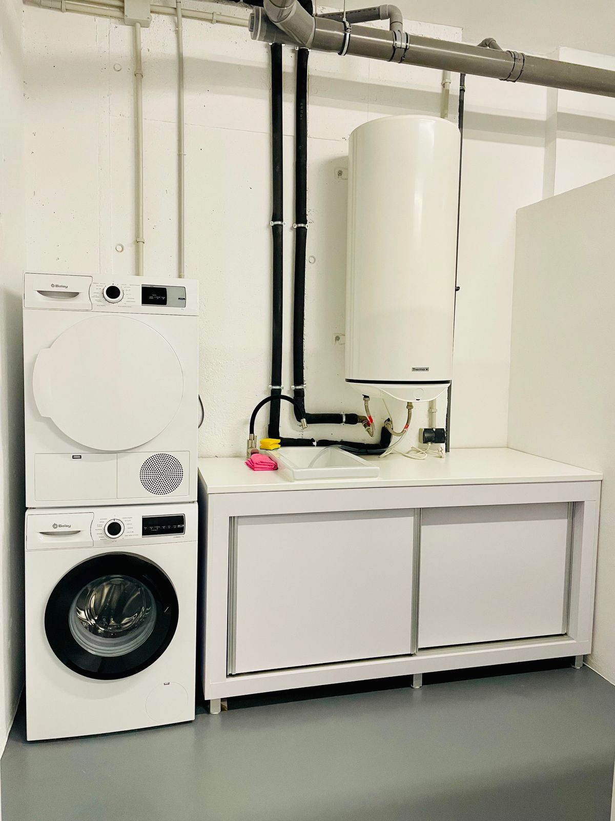 Offering a nice level of privacy, the terrace provides ample space for lounge and dining areas while overlooking the surrounding golf course. In the basement, a large private garage with direct internal access is complemented by additional storage space. An integrated laundry area, generous custom-made fitted cabinets, and a practical wine fridge ensure excellent organization and storage solutions. Furniture is available upon request as an additional option.