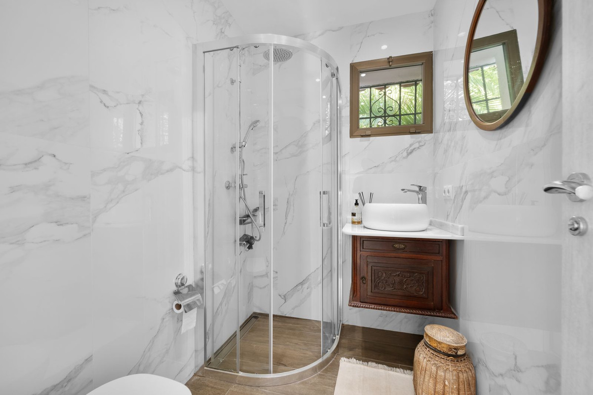 All three bedrooms are generously sized, and the villa includes two recently renovated bathrooms with walk-in showers. On the lower level, the former garage has been converted into a cozy and stylish living space, ideal for family gatherings or as an additional bedroom.