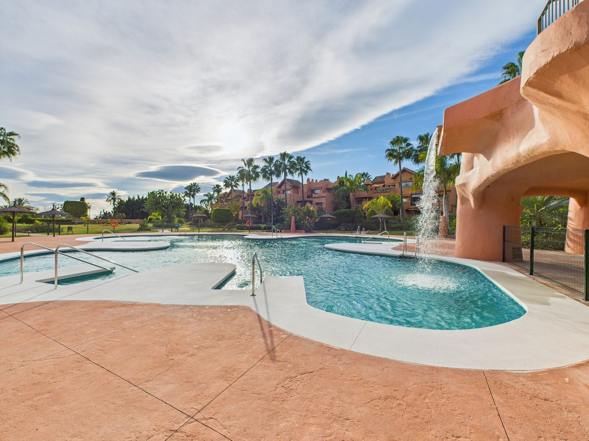 The property includes an underground parking space with a large private storage unit, as well as ample guest parking. A bus stop at the end of the road provides convenient connections to Estepona and Puerto Banús.