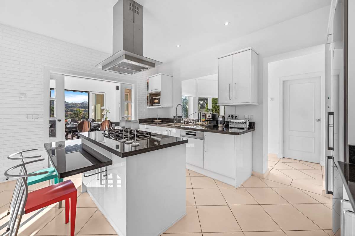 Outside, the villa opens onto a grand outdoor area with a heated swimming pool and an additional outdoor wing that can easily be converted into a fully equipped outdoor kitchen or entertaining space.
