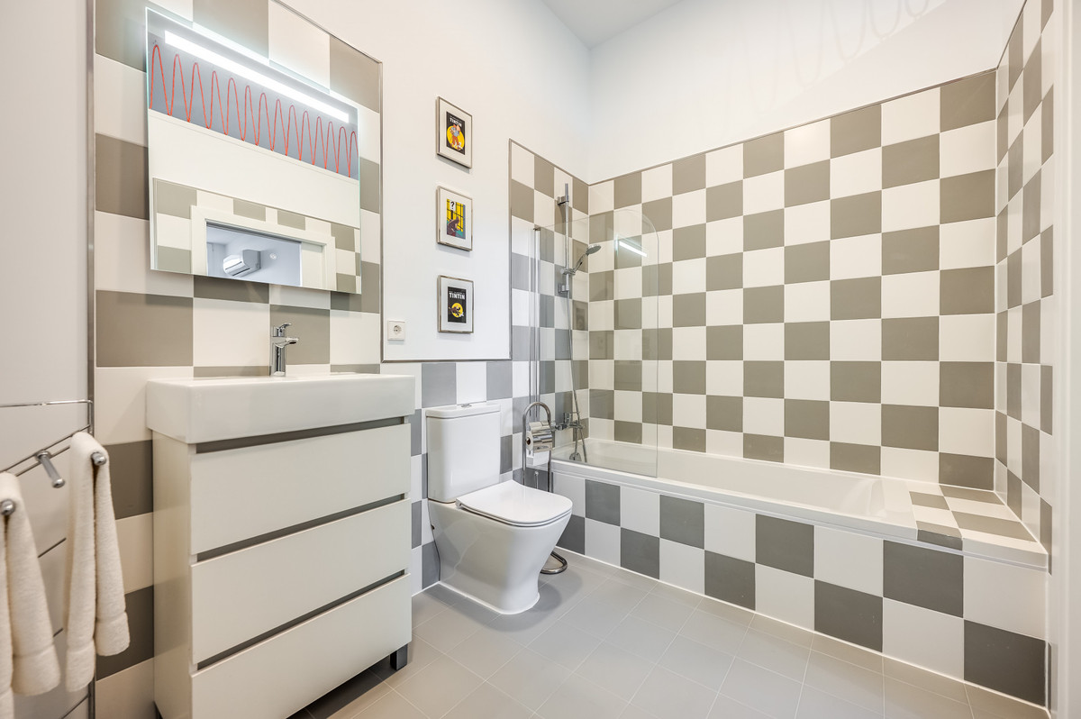 There is also a very generous guest bedroom with an ensuite bathroom and impressive ceiling height, accessed via a separate hallway. This bedroom can be entered without passing through the main living areas of the house, giving guests complete freedom to come and go as they please. This same hallway provides direct access to the two-car garage and utility room, where the heating, water & solar panel technical installations are located.