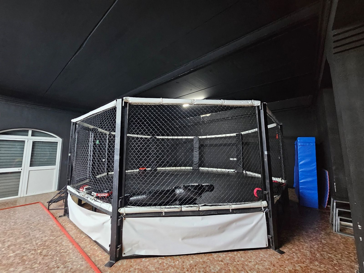 Basic features include 360 m² built on one floor, six rooms, five toilets/bathrooms, second-hand in good condition, and current commercial activity as a fitness centre. Additional equipment includes a warehouse/archive and an alarm system. The building is low-rise, and the energy certificate is in process.