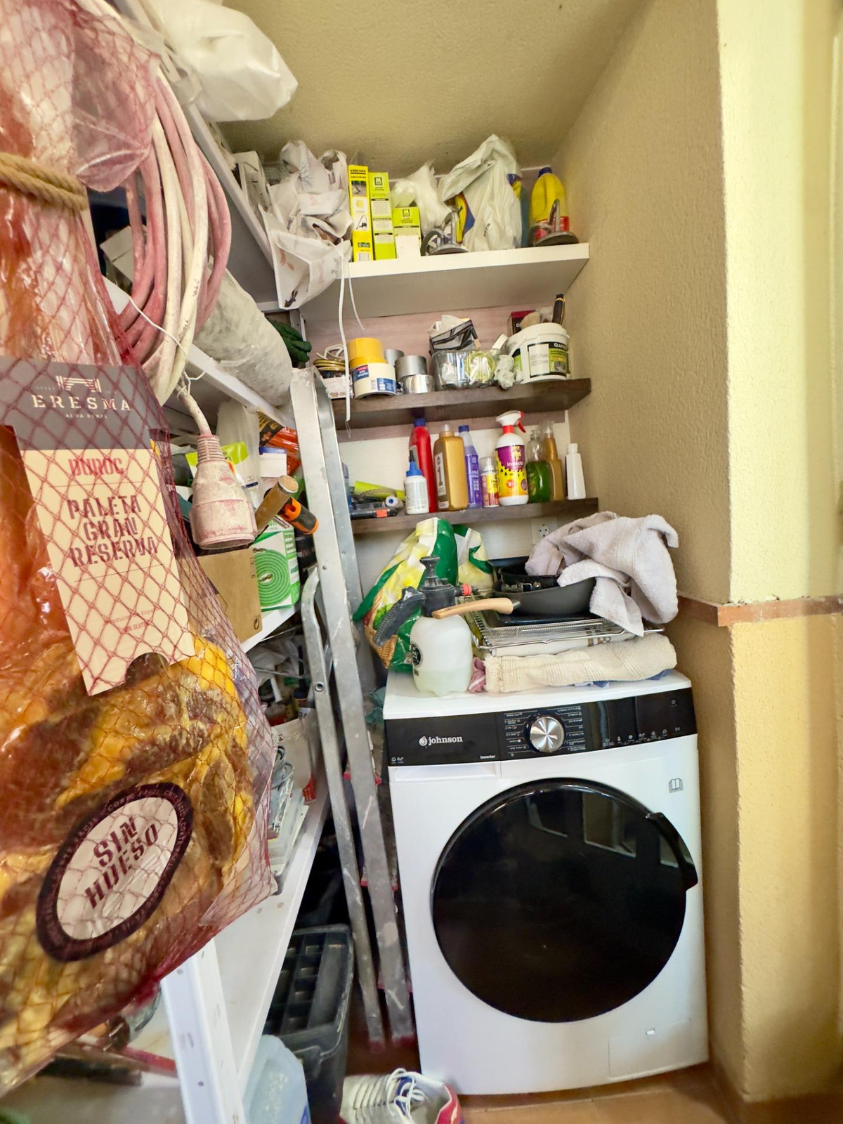 Well-maintained townhouse for sale with a private entrance, located in the residential complex Residencial Amaro, in the quiet area of Lo Marabú Oeste (Rojales). The property enjoys a south-west orientation, providing excellent natural light throughout the day.The house is distributed over two floors.On the ground floor there is a cozy living room, a custom-made kitchen with built-in furniture and a storage room, one bedroom and a bathroom.On the upper floor you will find the master bedroom with a balcony (6.56 m²), another bedroom and a bathroom. All bathrooms are equipped with underfloor heating, ensuring comfort all year round.The property has been renovated with high-quality finishes and is ready to move into.The plot size is 98.45 m².The residential complex offers a communal swimming pool with green areas, perfect for relaxation. A private parking space no. 9 is included in the price.An excellent option for permanent living, holiday use or investment.