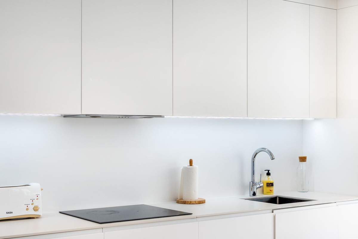 The property has a spacious, bright living-dining room with large windows that open onto a large private terrace, the real added value of this property. The fully equipped kitchen has a central island, perfect for breakfasts and dinners in a comfortable and functional environment. It includes an oven, microwave, dishwasher, refrigerator and coffee maker.