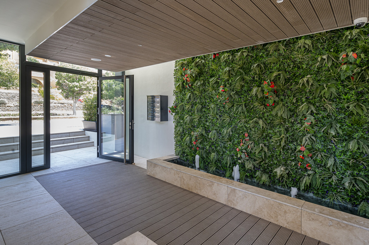 Spanning an impressive 104m² of interior space, the apartment features two generously proportioned bedrooms and two meticulously designed bathrooms. The fully fitted kitchen, equipped with high-end appliances, flows seamlessly into the open-plan dining and living areas, creating a perfect space for entertaining or relaxation. Premium finishes, including marble flooring, double glazing, and glass doors, enhance the sophisticated aesthetic, while the home automation system, central heating, and air conditioning ensure year-round comfort. Additional highlights include a utility room, storage room, and a private garage.