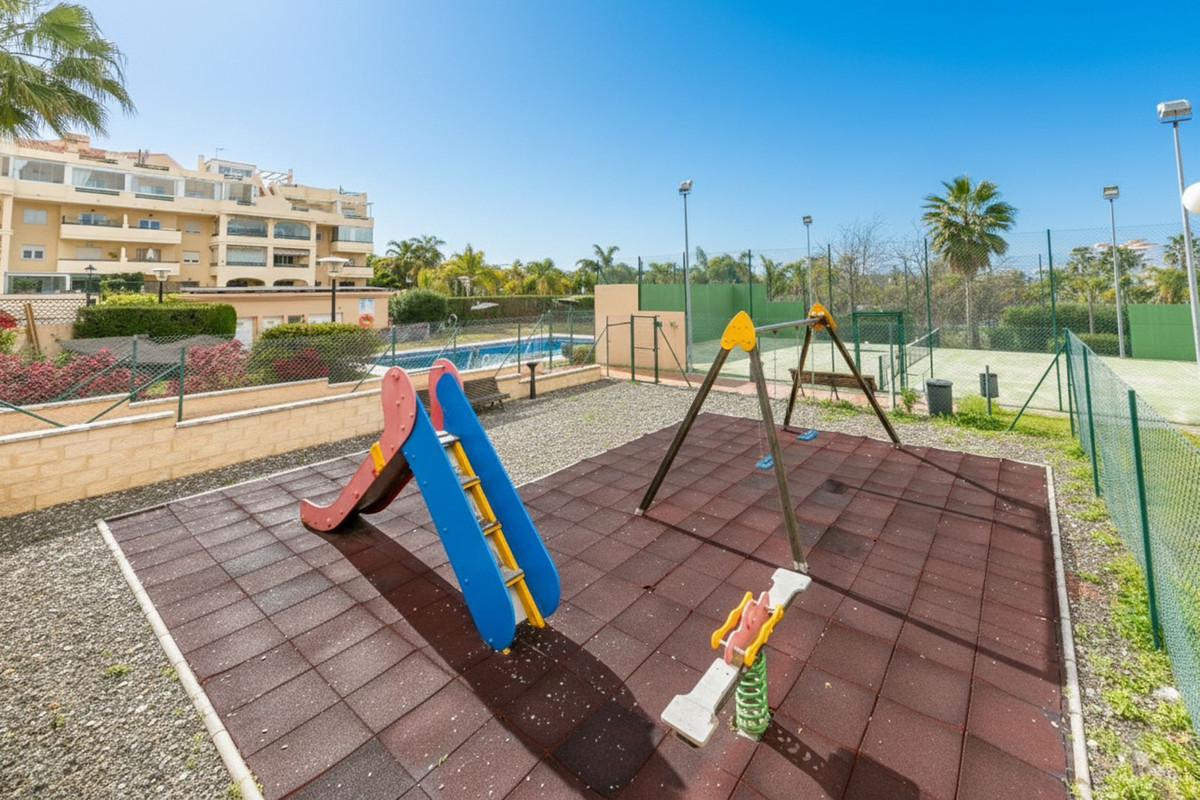 Well-maintained community with large gardens, swimming pool, children's play area and paddle tennis court.
