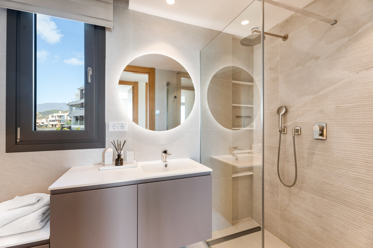 Accommodation includes three spacious bedrooms, led by a luxurious master suite with direct terrace access and west-facing views towards La Zagaleta. All bedrooms are fitted with individual safes, and the bathrooms are beautifully finished to a high standard.
