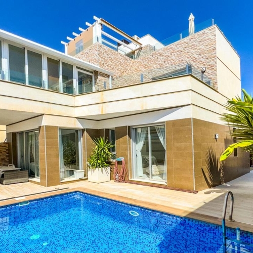 The villa offers three bedrooms and two bathrooms, distributed over a well-planned area that creates a pleasant balance between social areas and privacy. Adjacent to the entrance you are greeted by a glazed veranda, one of the house's greatest assets. From here a magnificent view opens up over the entire Mar Menor - a place where you can start your day with morning coffee and end it with the soft colors of the sunset.